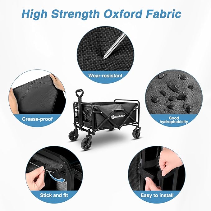• Durable & Sturdy Construction - Built with a robust iron frame and 600D Oxford fabric, this foldable wagon is designed to withstand heavy loads and rough terrains, ensuring long-lasting performance.