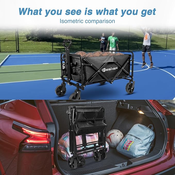 Yesker Foldable Wagon - 220lbs Collapsible Garden Carts with All Terrain Wheels for Outdoor Camping Sports Shopping Gardening - Heavy Duty Portable Utility Trolley (Black)