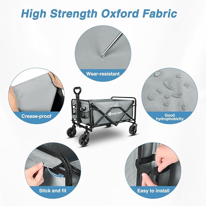 • Durable & Sturdy Construction - Built with a robust iron frame and 600D Oxford fabric, this foldable wagon is designed to withstand heavy loads and rough terrains, ensuring long-lasting performance.