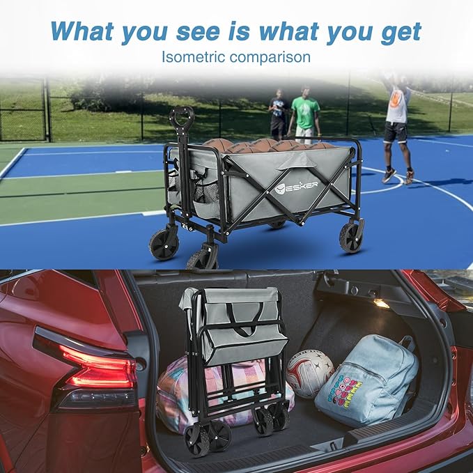 Yesker Foldable Wagon - 220lbs Collapsible Garden Carts with All Terrain Wheels for Outdoor Camping Sports Shopping Gardening - Heavy Duty Portable Utility Trolley (Gray)