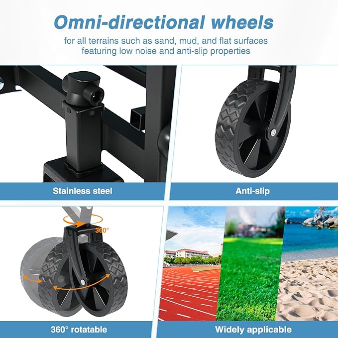 • Versatile All-Terrain Wheels - Equipped with durable wheels that glide smoothly over various surfaces, including grass, sand, gravel, and pavement, ensuring effortless mobility in any setting.