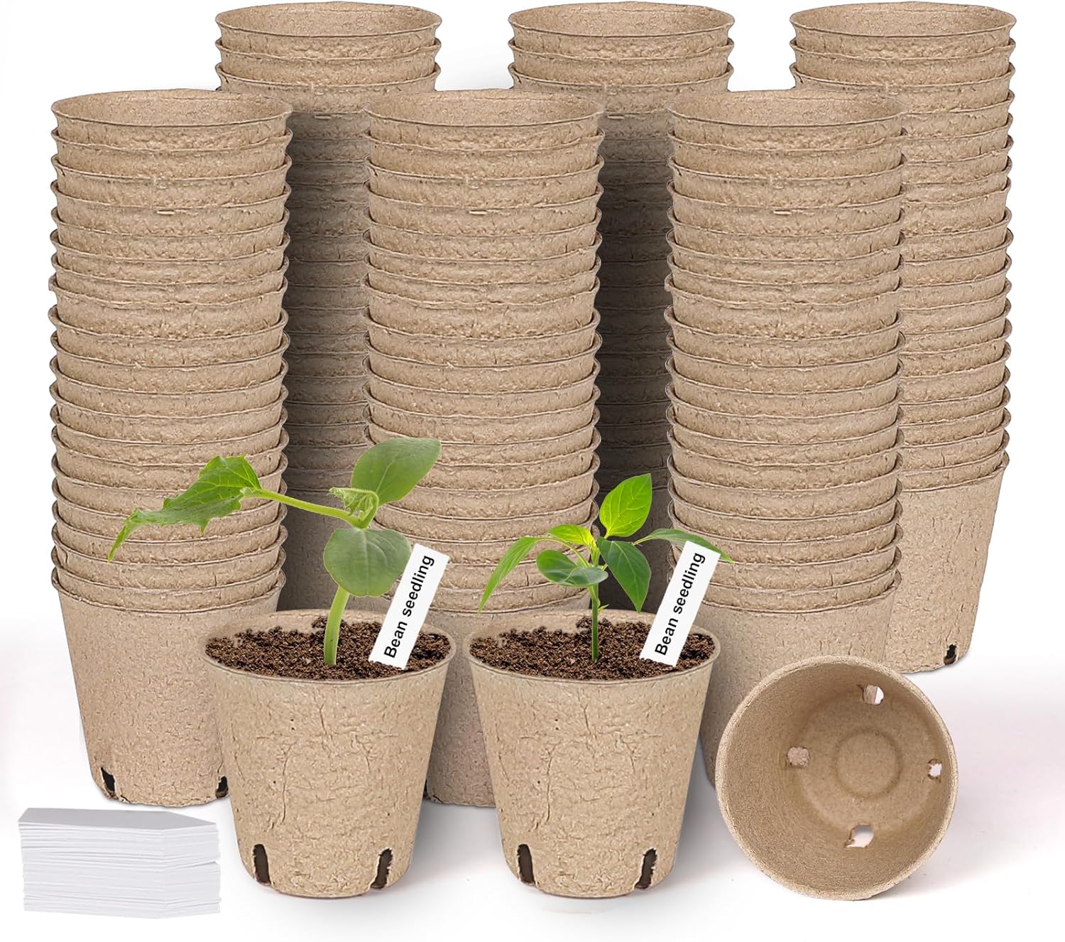 • Package Include: Plant starter pots package include 120 pack peat pots. Each pot measures 3.15 inches in diamete. Comes with 100 pcs plant labels, and you can use them to mark the seeds in your peat pots