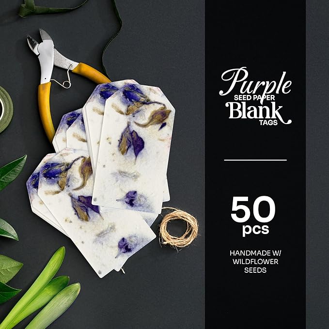 50Pcs Plantable Purple Seed Paper Tags with Wildflower Seeds, Writable & Plantable Gift for Moms, Plant Lover, Teachers, Ideal for Weddings, Baby Shower Favors, Memorial, & Celebrations