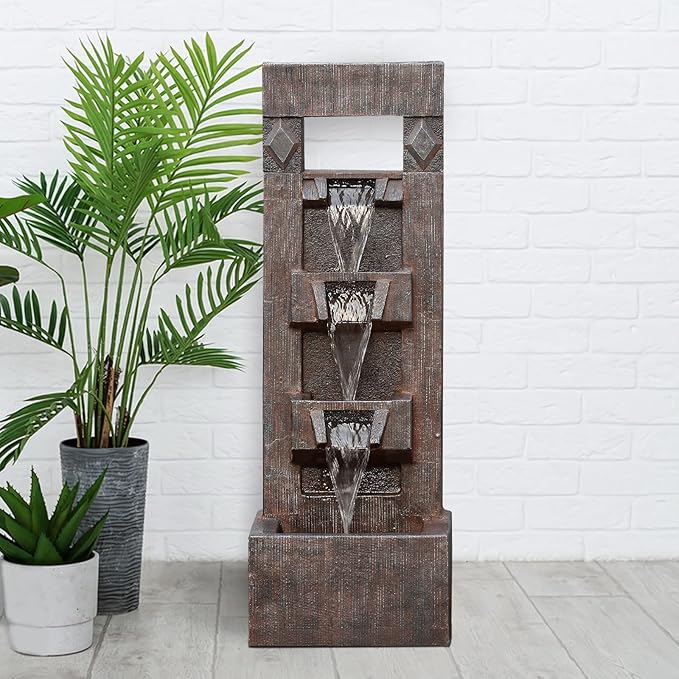 40.9" H 4-Tier Indoor/Outdoor Modern Water Fountain with Led Lights and Pump, Outdoor Freestanding Cascading Waterfall - Suitable for Garden, Patio, Porch, Yard and Outdoor Decor (Brown)