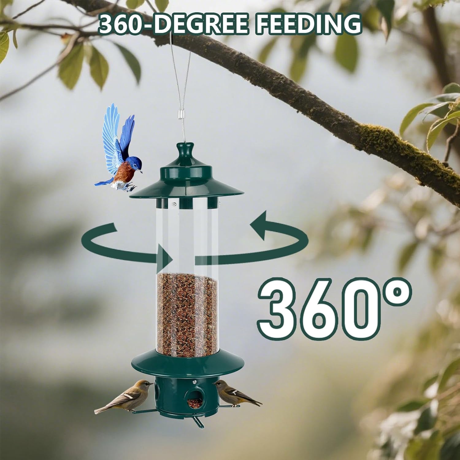 • Hanging Bird Feeder for Outdoors: Crafted with durable metal + PC tube, this squirrel proof bird feeder is rust-proof, waterproof, and weather-resistant, ensuring long-lasting use even in harsh conditions. The innovative design keeps squirrels at bay while providing a reliable feeding station for bluebirds, cardinals, finches, sparrows, and blue jays. Perfect for bedrooms, patios, gardens, and backyards, this hanging bird feeders is a must-have for bird lovers