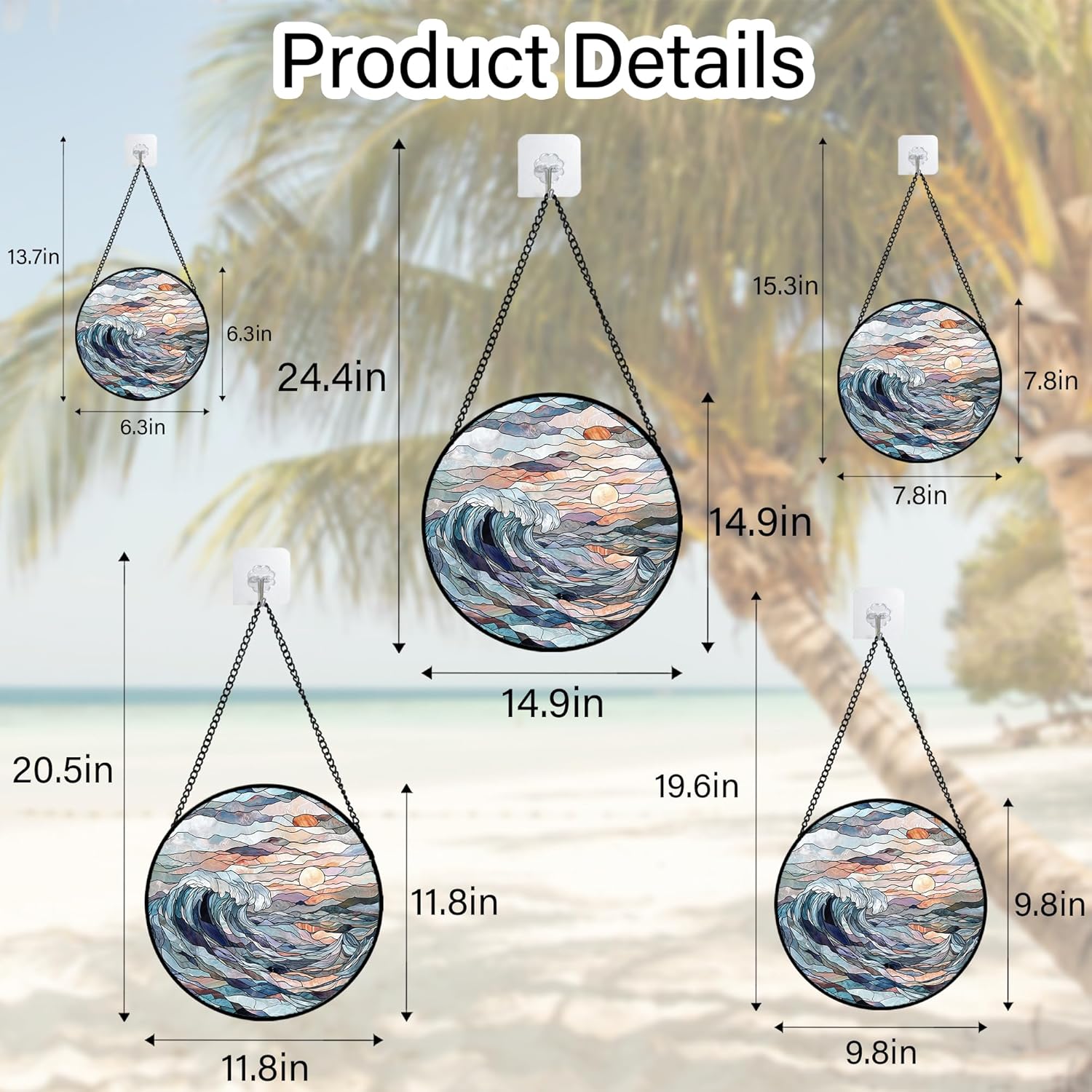 Stained Glass Window Hanging, Sunrise Waves Sun Catchers Diamond Glass Panel Hangings Abstract Suncatcher Decor for Birthday for Women, Men, Wife, Aunt, and Mom 14.9x14.9 in