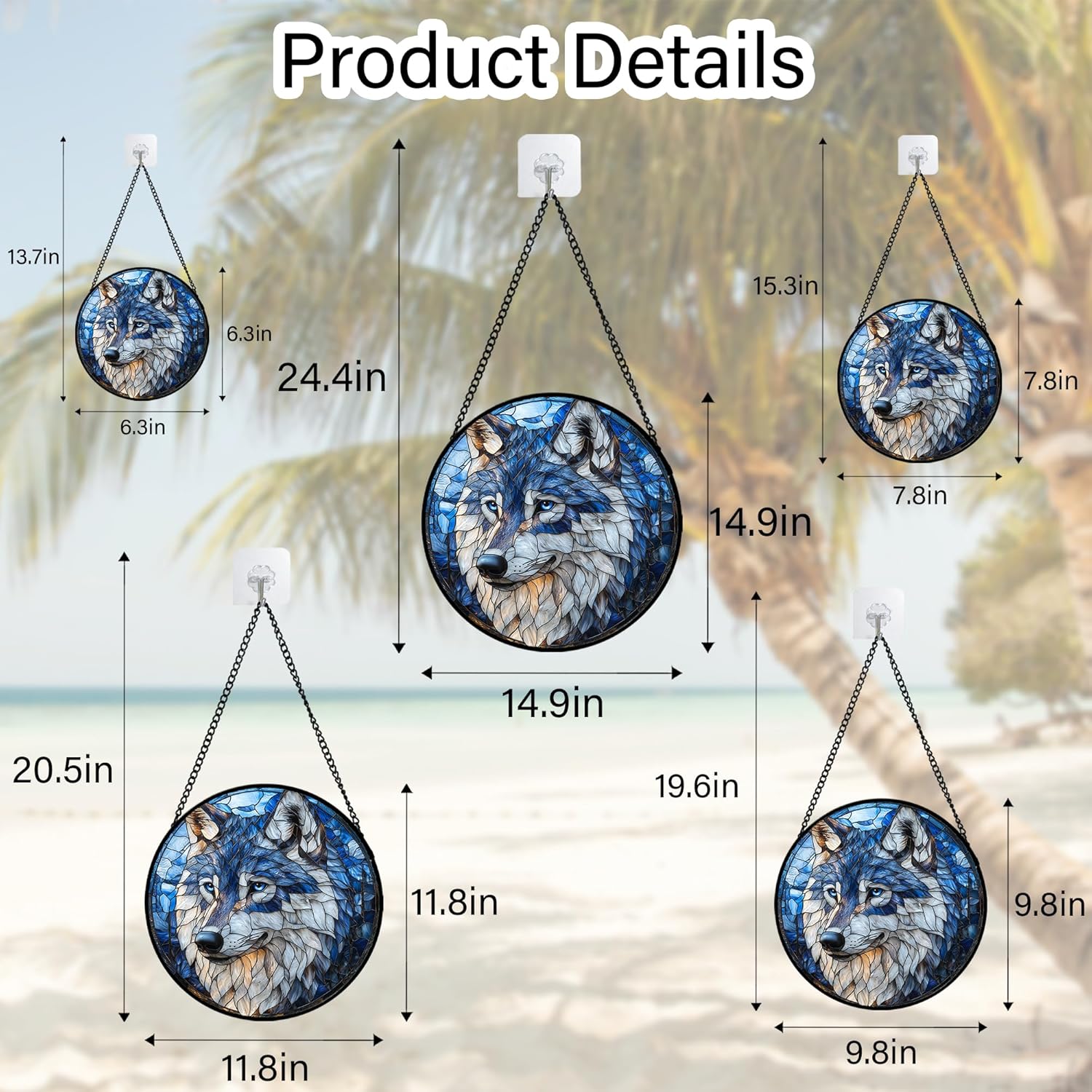 Stained Glass Window Hanging - Funny Wolf Suncatcher Ready to Hang Window Doors Home Decoration and Christmas, Mother's Day Birthday Gifts for Women, Men, and Mom 14.9x14.9 in