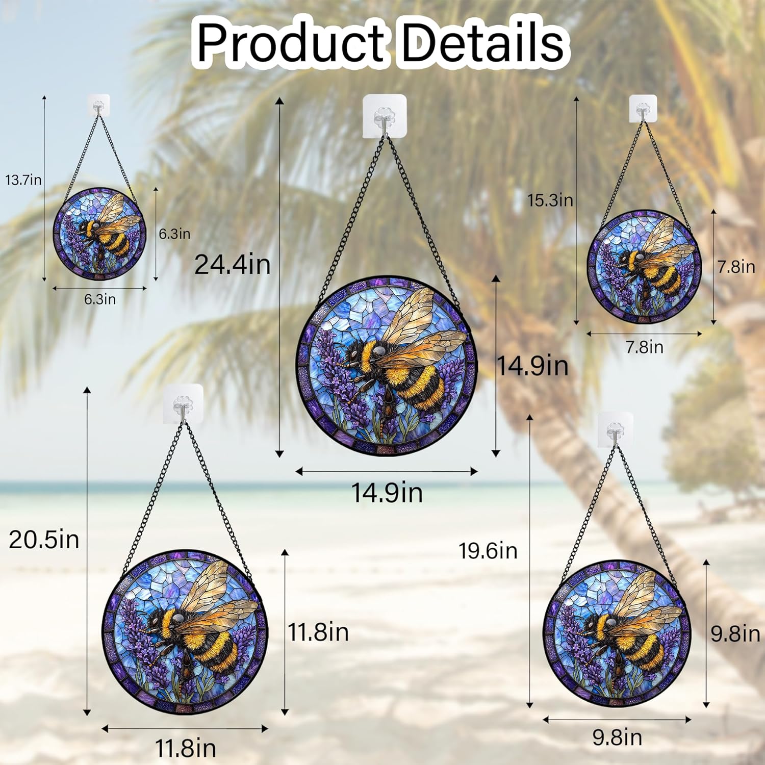 Stained Glass Window Hanging, Bee Lavender Sun Catchers Diamond Glass Panel Hangings Insect Suncatcher Decor for Birthday for Women, Men, Wife, Aunt, and Mom 14.9x14.9 in