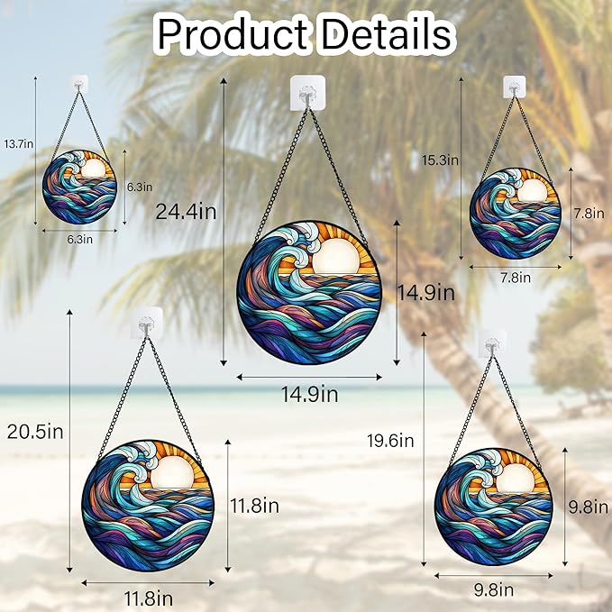 Stained Glass Window Hanging, Big Wave Sun Suncatcher Diamond Glass Panel Hangings Abstract Sun Catchers Decor for Birthday for Women, Men, Wife, Aunt, and Mom 14.9x14.9 in
