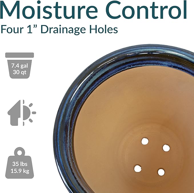 • DESIGNED FOR BEAUTY AND DURABILITY: This outdoor plant pot is crafted with a rich, hand-painted glazed finish that is kiln-fired for a classic, shining appearance. Subtle variations in color highlight the artisanal glazing process, making each piece truly unique. The durable ceramic construction offers natural UV and frost resistance, while its heavy weight adds stability to outdoor arrangements, keeping the planter upright in windy conditions.