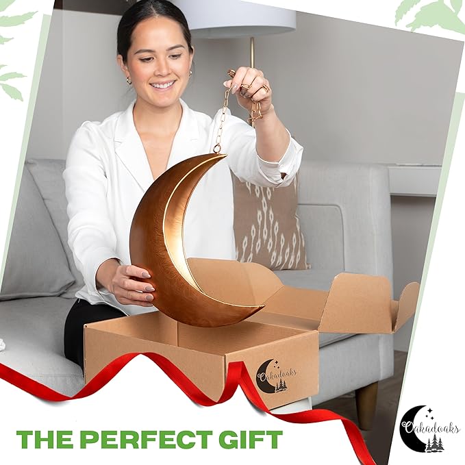 Hanging Moon Bird Feeder – Unique Metal Bird Feeders for Outdoors, Antique Gold, Rust-Resistant, Drain Holes – Wild Bird Feeder for Bluebirds, Cardinals, Finches, and Backyard Birdwatching