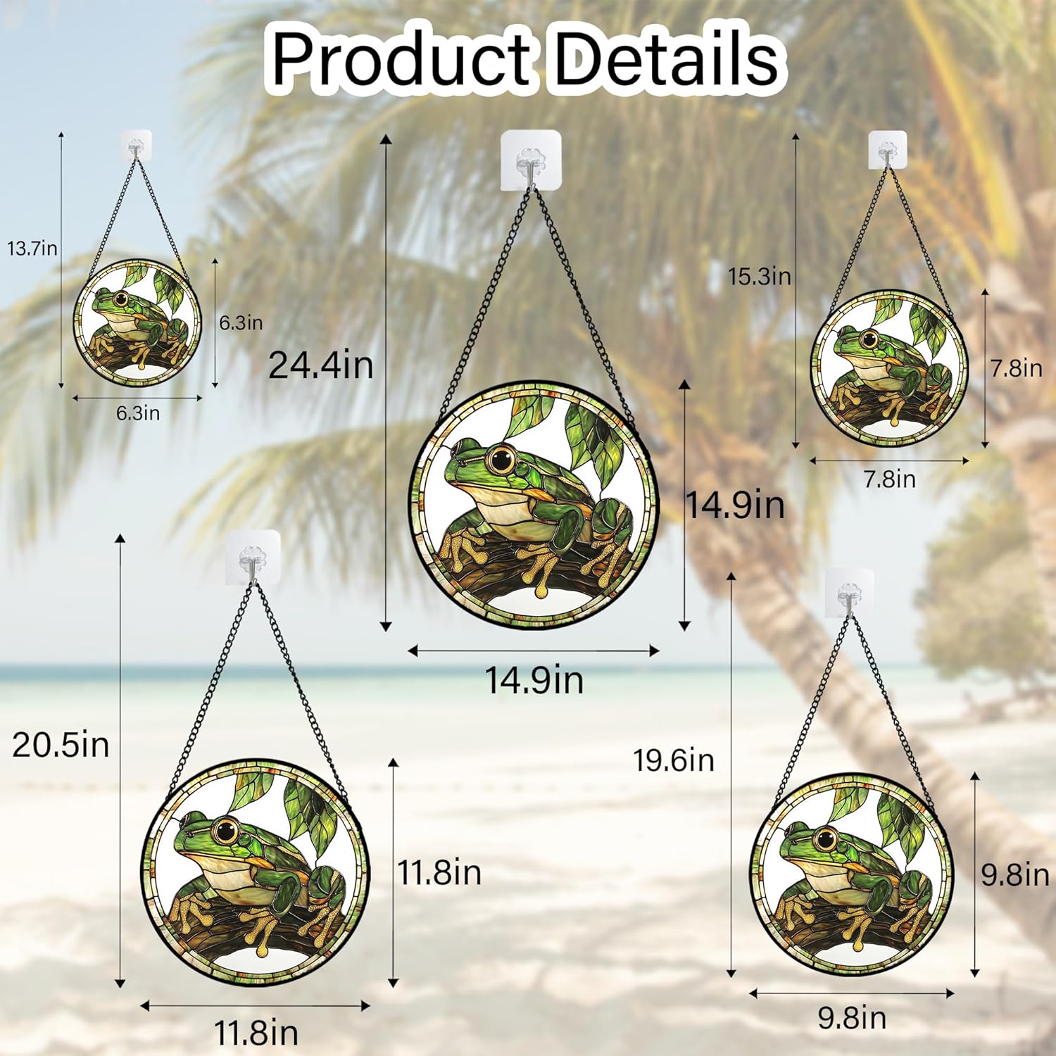 Stained Glass Window Hanging, Frog Green Leaf Sun Catchers Colorful Glass Panel Cool Suncatcher Decor for Birthday for Women, Men, Wife, Aunt, and Mom 14.9x14.9 in
