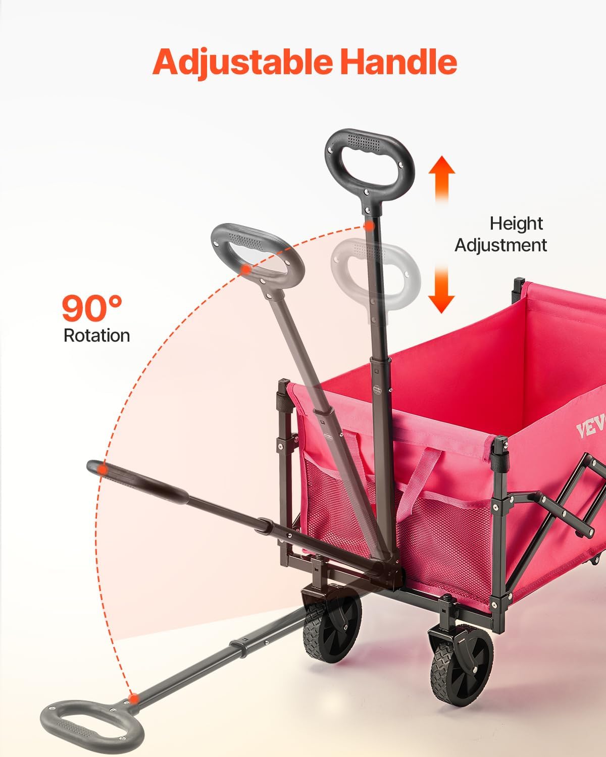 • All-Terrain Wheels: This folding wagon cart is equipped with 5x1.5-in PVC wheels, allowing for easy movement on various surfaces, including sand, grass, and paved streets. Whether you use it for outdoor adventures, shopping, or transporting garden supplies, it can meet your needs.