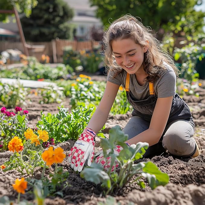 • DURABLE AND BREATHABLE MATERIAL: Gardening gloves are made of microfiber leather to ensure abrasion resistance. Reinforced fingertips protect your fingers. The palms have excellent grip and provide ultimate protection against scratches or cuts when planting vegetables or flowers. The back of the hand is made of stretchy and breathable fabric to keep your hands dry and clean while working. It would be great gardening gloves for women