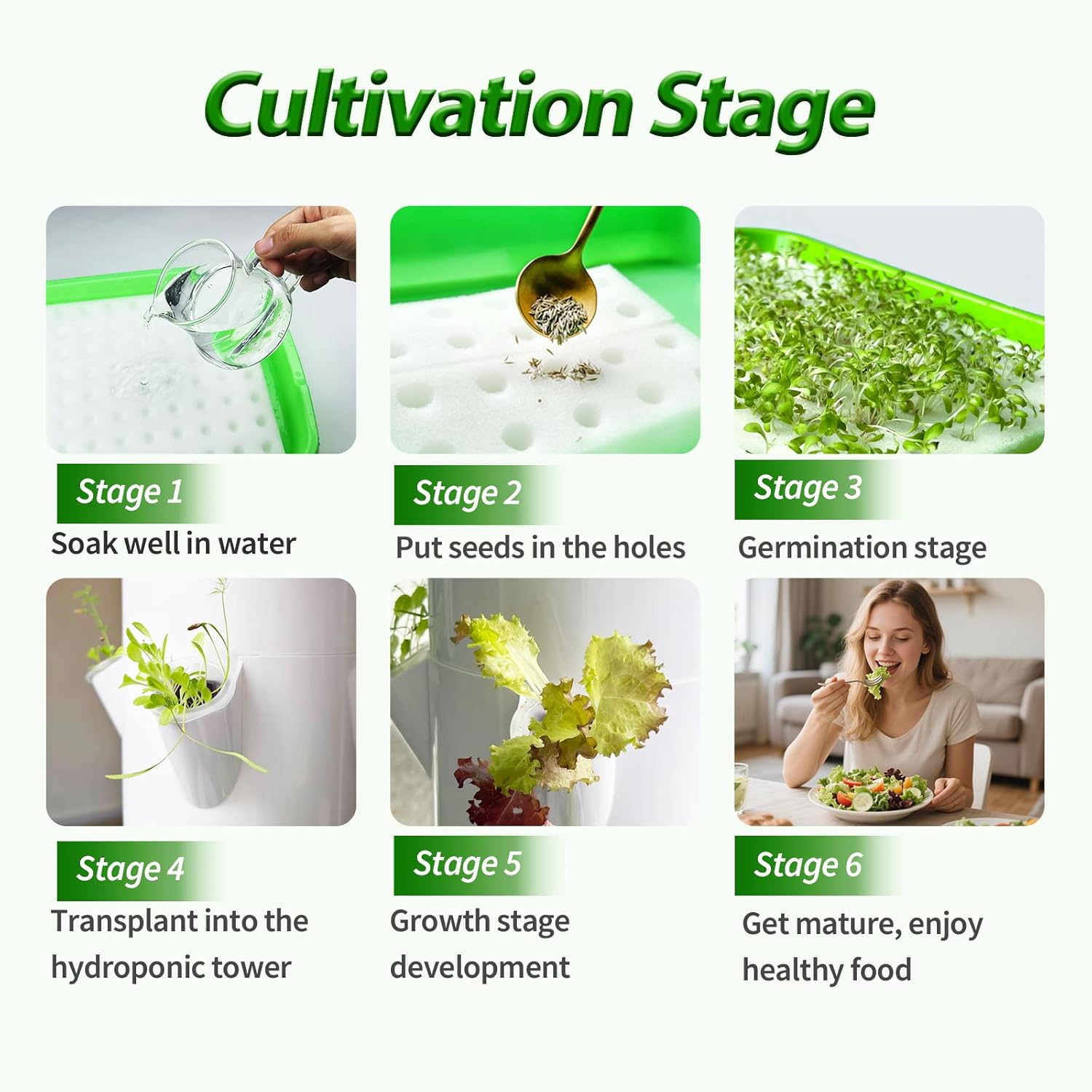 • 【Quiet & Versatile】This tall hydroponic tower planting system kit includes all needed parts and a thick sponge to reduce water noise. It made of premium healthy materials and is suitable for your living room, kitchen, bedroom, garden, or even a school
