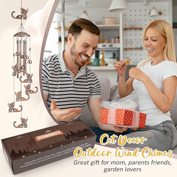 • 🎁 Gardening Gifts for Cat Lovers:This cat windchime makes an ideal gardening gifts for women, men, and cat lovers. A thoughtful present for cat party or birthday decorations , bringing joy to any home or garden.Perfect gifts for Mother's Day, Father's Day, Thanksgiving, Christmas, Valentine's Day, Birthday, Wedding Anniversary, New Year's and housewarming gifts for mom, dad, wife, husband, lovers, daughter, son, sisters, friend, or yourself.