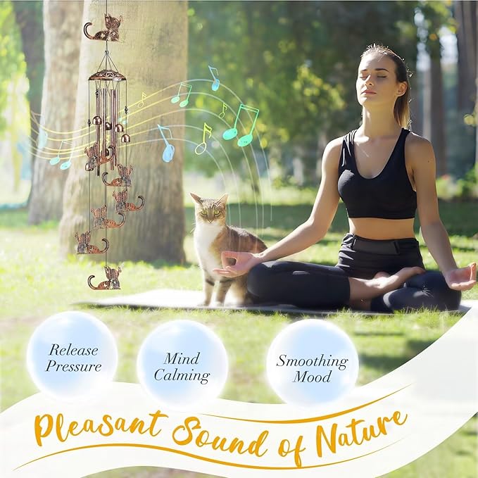 • 🎶 Wind Chimes for Outside:Gentle breezes create soft, melodic tones as the aluminum tubes and bells campanas de viento together. Ideal for gardens, patios, or porches, these cat windchimes outdoors bring nature's music to your space, offering relaxation and charm.