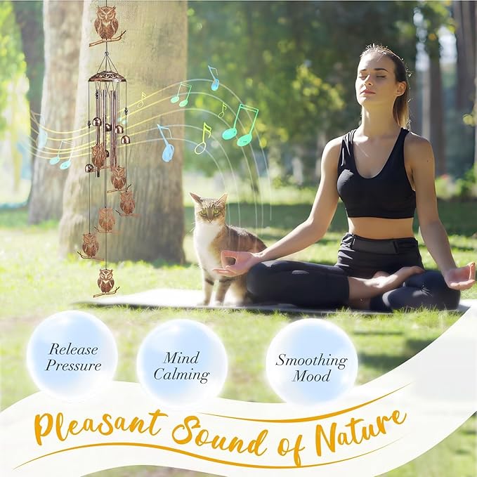 • 🎶 Wind Chimes for Outside:Gentle breezes create soft, melodic tones as the aluminum tubes and bells campanas de viento together. Ideal for gardens, patios, or porches, these owl windchimes outdoors bring nature's music to your space, offering relaxation and charm.