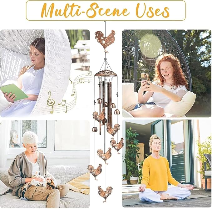 • 🎶 Wind Chimes for Outside:Gentle breezes create soft, melodic tones as the aluminum tubes and bells campanas de viento together. Ideal for gardens, patios, or porches, these chicken windchimes outdoors bring nature's music to your space, offering relaxation and charm.
