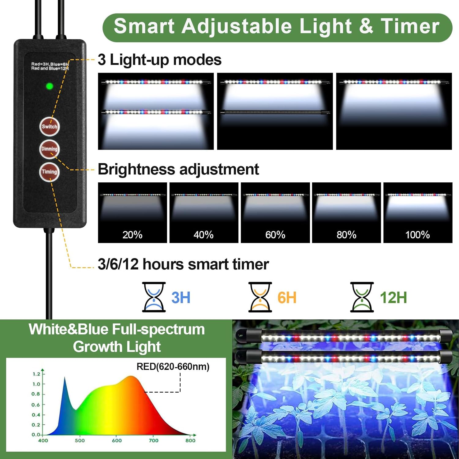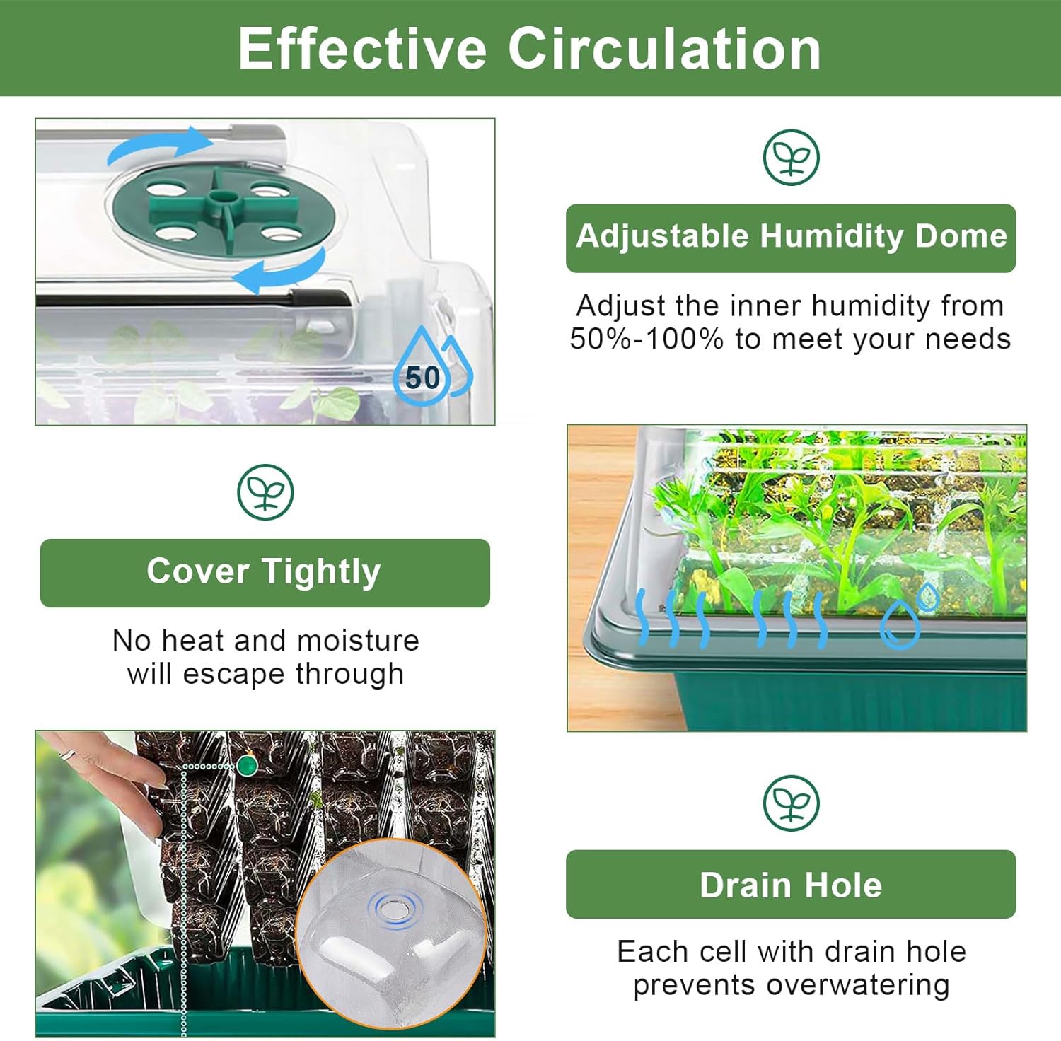 • 【Advanced Grow Lights for Seed Starting Trays】Seed starting kits are equipped with grow light, which feature 5 adjustable brightness and 3 timing functions (3H/6H/12H) to give a premium growing environment. Simulating the full spectrum of sunlight to promote photosynthesis and provide the best environment for seed germination.