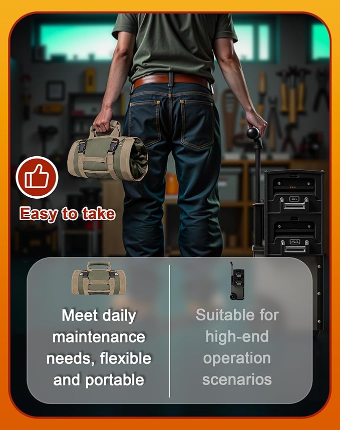 • Compact Design | On-the-Go Ready: Rolls up neatly to fit in car trunks or tool chests. The tool roll bag is ideal for job sites, roadside repairs, home maintenance, or emergency repairs—all-in-one portability.