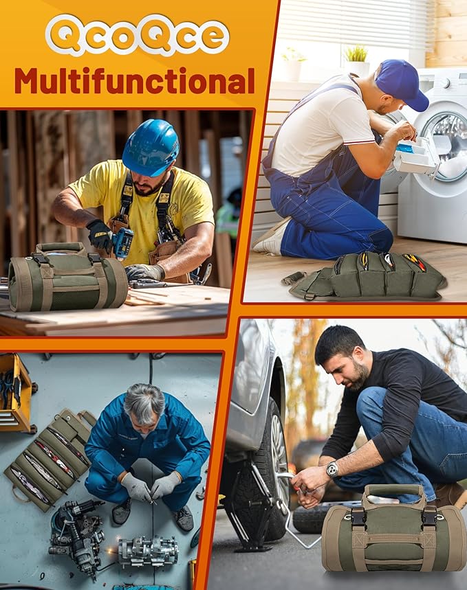 • The Pro’s Choice | Ultimate Gift for Tradespeople: QcoQce tool roll is ranked a "practical craftsman’s gift"—78% buyers gift it to mechanics, carpenters, electricians, or repair pros. Gender-neutral colors and pro-grade look make it a husband’s worksite essential or wife’s home fix-it ally. It arrives in sleek, gift-ready packaging—perfect for holidays or special occasions.