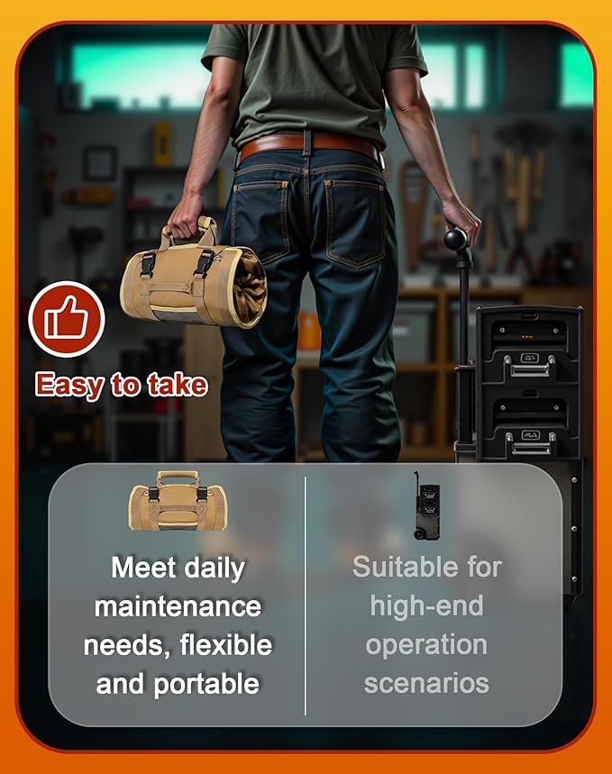 • Compact Design | On-the-Go Ready: Rolls up neatly to fit in car trunks or tool chests. The tool roll bag is ideal for job sites, roadside repairs, home maintenance, or emergency repairs—all-in-one portability.