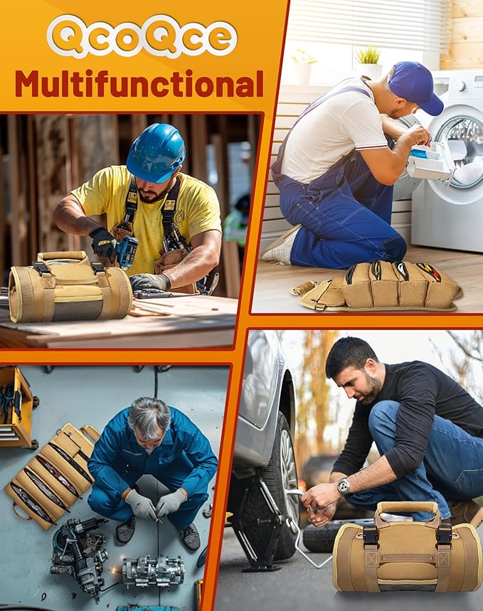 • The Pro’s Choice | Ultimate Gift for Tradespeople: QcoQce tool roll is ranked a "practical craftsman’s gift"—78% buyers gift it to mechanics, carpenters, electricians, or repair pros. Gender-neutral colors and pro-grade look make it a husband’s worksite essential or wife’s home fix-it ally. It arrives in sleek, gift-ready packaging—perfect for holidays or special occasions.