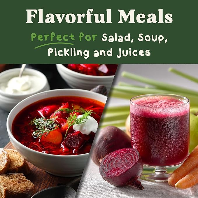 • Fresh Flavor at Your Fingertips – Transform your meals with the vibrant taste of homegrown beets. Whether used in soups, salads, pickled or juiced, these seeds yield flavorful beets you’ll love.