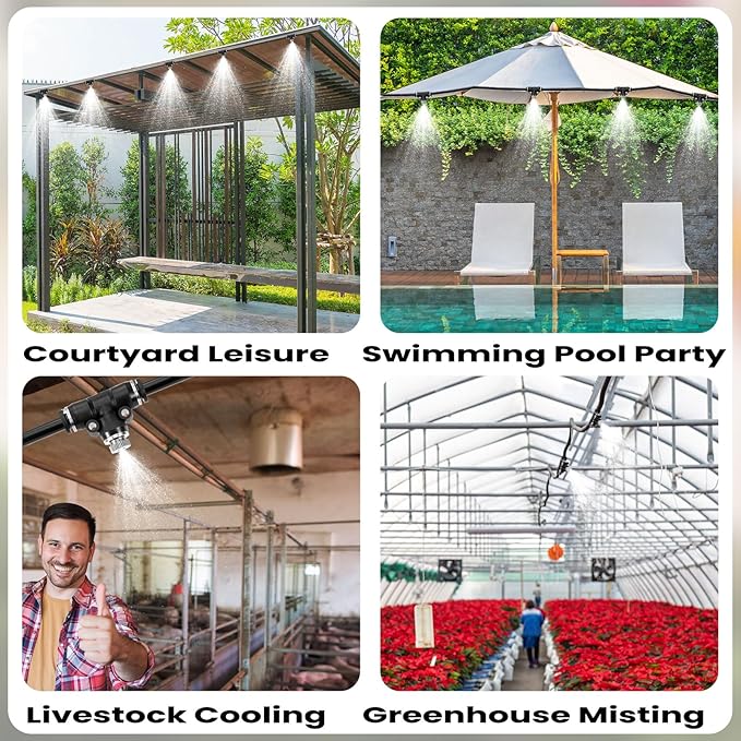 • 【Ideal for Multiple Uses】Stay cool in hot summer with these misting nozzles.These misting nozzles are perfect for creating a refreshing outdoors play area for humans,providing cooling for pets during the summer heat, or adding a cool mist around your pool for a refreshing swim experience
