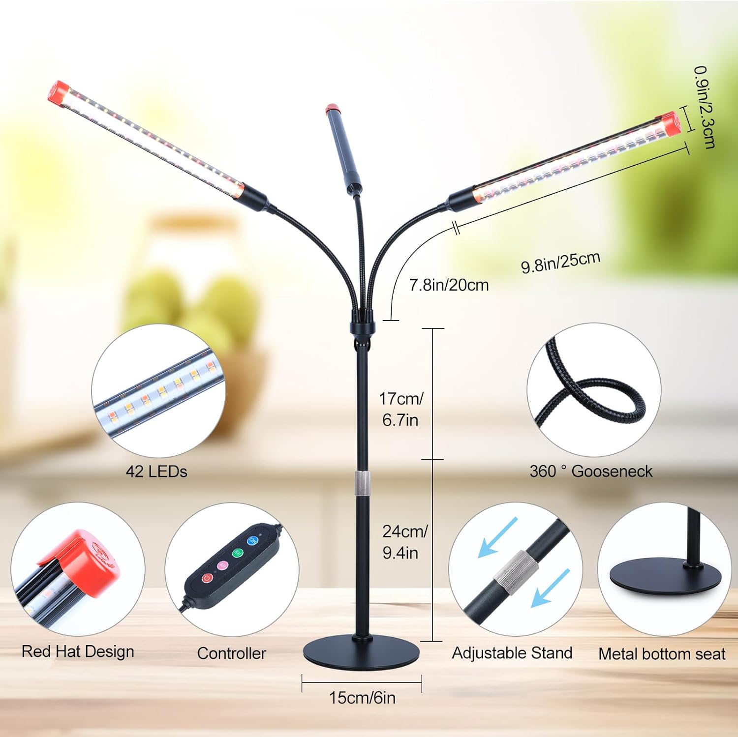 • Stable Base and Height Adjustable Grow Light---Stable Base Lets You can Free Standing the Grow Light on Desk or Table Top, Height Adjustable Lets you can adjust the Grow Light to Different Height and any direction just as you like.