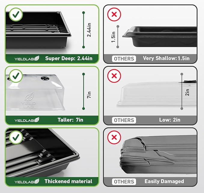 • COMPLETE YOUR SETUP: Our 7-inch tall humidity dome is compatible with our 10x20 trays and heat mats, seamlessly integrating into your gardening routine. Providing essential protection and accommodating various plant heights, this purposeful combination ensures optimal conditions for robust vertical growth. Choose quality materials to complete your set and set the stage for a successful and rewarding gardening experience.