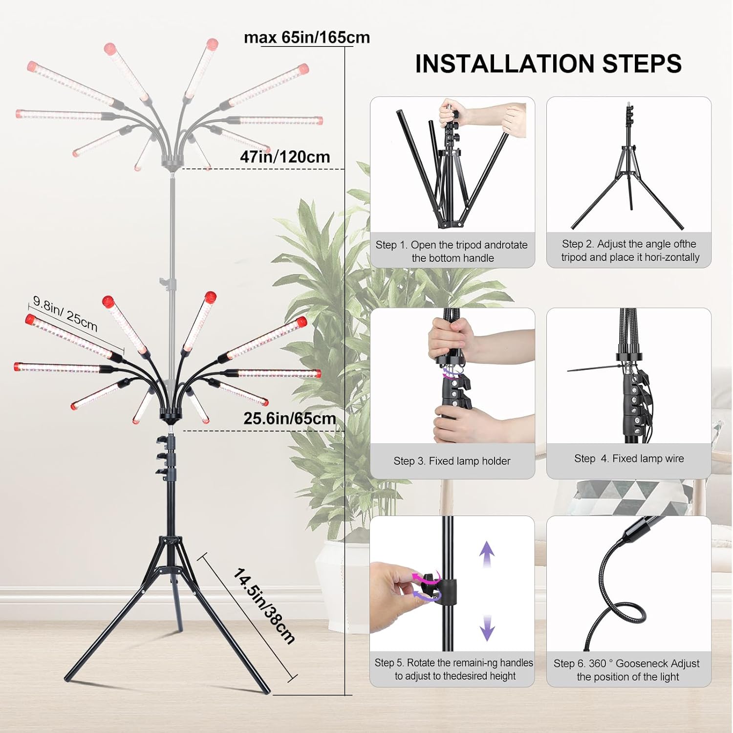• Sturdy Stand & Adjustable Height(40"-64")---Adapts to Your Plant's Every Growth Stage – From Seedling to Harvest.
