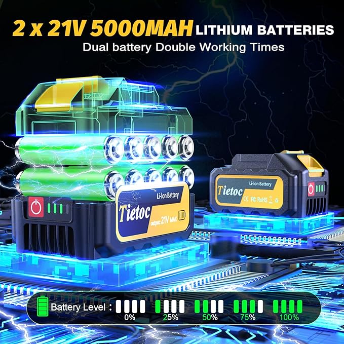 - ๐๐ซ๐๐๐ญ ๐๐๐๐ ๐๐จ๐ซ ๐๐ข๐๐ญ๐ข๐ง๐ : Tietoc leaf blowers for lawn care packaged includes: 1x leaf blower body, 2x extension blowpipes, nozzles, 2ร21V 5.0Ah batteries, 1x charger, 1x manual. 1x Exquisite packaging box. Exquisite high-quality gift box packaging suitable for both gifting and personal use. Whether it's holiday gifts, gratitude from family and friends, or rewarding oneself, all demonstrate sincerity and quality.