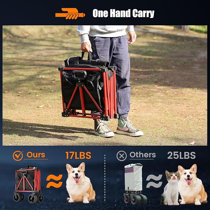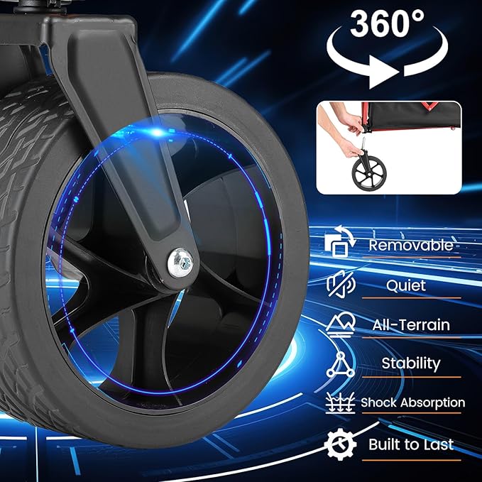 • 【Glide Smoothly & Steer Freely】Equipped with 6.7'' diameter wheels and 3'' wide treads, plus a dual-bearing system for smooth motion, the front wheels rotate 360° for maximum control. Easily handles sand, grass, and uneven ground, making pulling or pushing effortless, even when fully loaded.