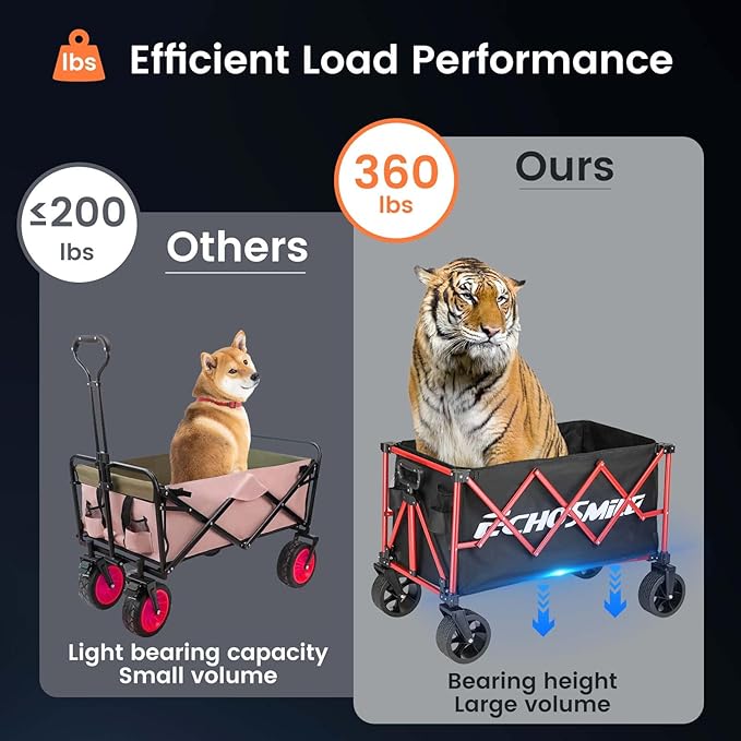 EchoSmile Collapsible Folding Wagon Cart 360lbs, Heavy Duty Garden Utility Cart with All Terrain Wheels, Large Capacity Outdoor Wagon for Camping, Beach, Shopping, Picnic (Black Red)