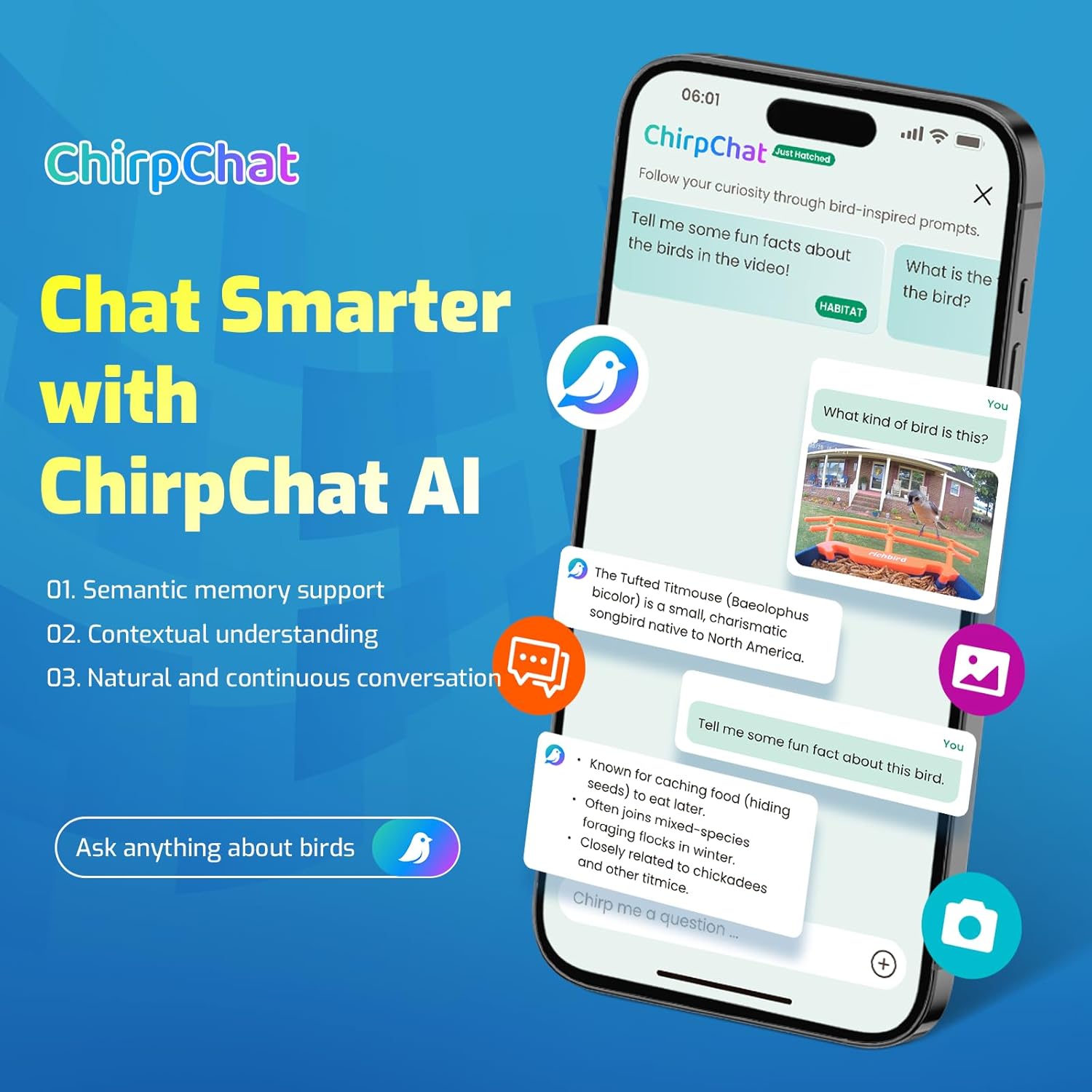 - World’s First Backyard Birding App for Interaction & Entertainment: HIXX bird feeder with camera pairs seamlessly with CoolFly, the FIRST App designed for interactive birding. CoolFly combines FREE AI bird recognition with vibrant community features like video sharing, likes, comments, and Group Chats. Dive into a rich bird database with detailed species traits, sounds, diet, and more. Together, HIXX and CoolFly redefine birdwatching—making it smarter, more interactive, and globally connected.