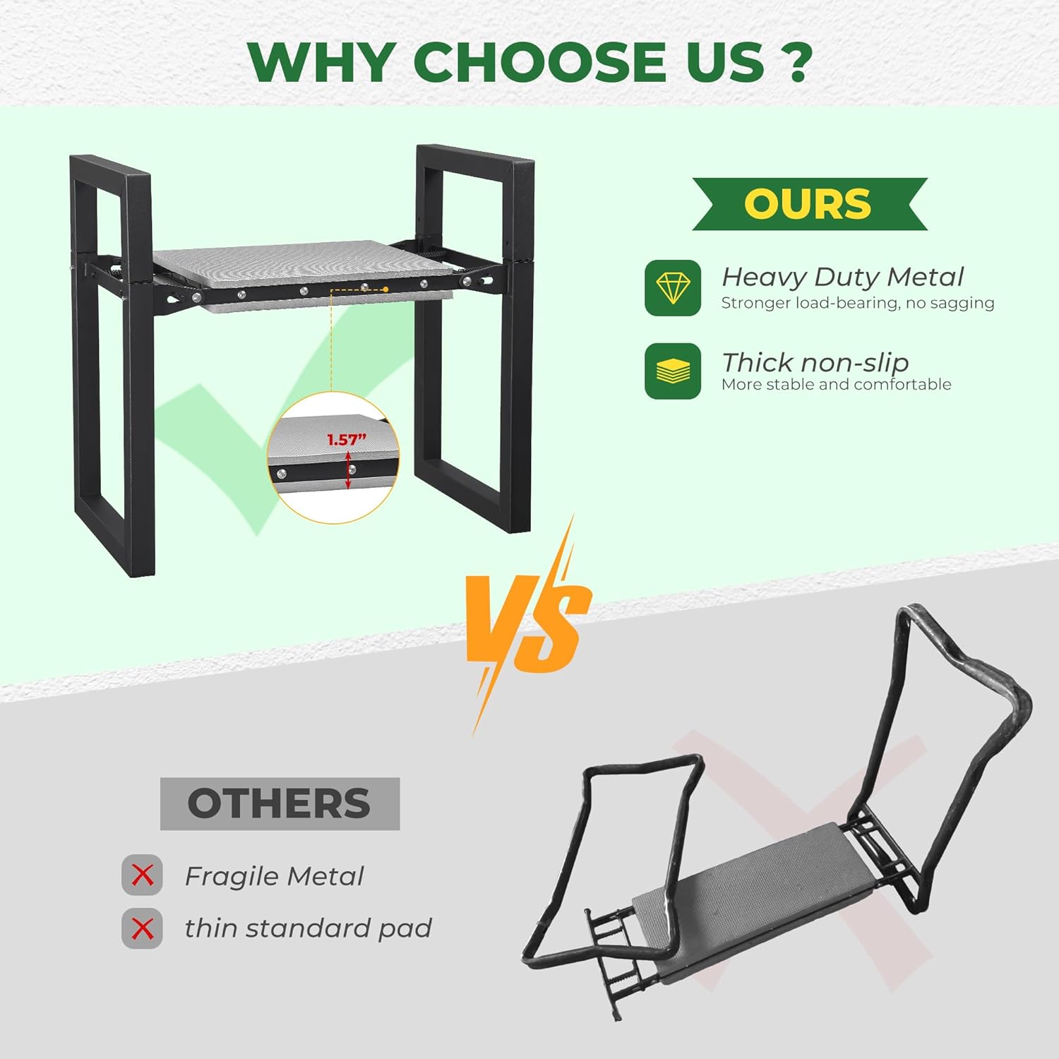 • Heavy Duty Metal: Built with reinforced steel tubing and industrial-grade welding, this gardening stool can support up to 400 lbs. Say goodbye to concerns about bent legs or collapsed joints