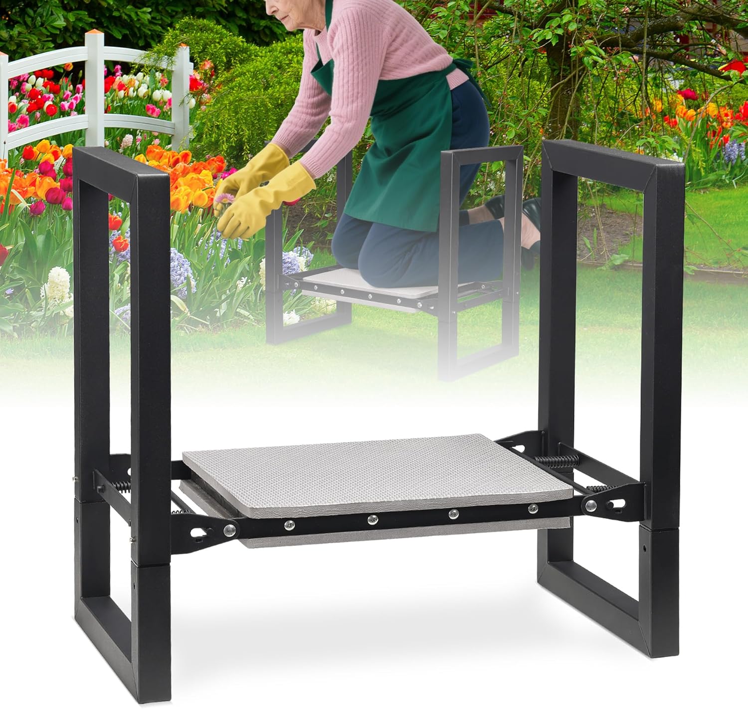 • Ergonomic Knee & Back Protection: Designed with a 12.7" wide, 1.5" thick EVA foam cushion, this garden kneeler provides superior padding to reduce pressure on knees and joints during gardening or household tasks. The sturdy metal frame and integrated handles offer stable support for easy standing, ideal for seniors or those with arthritis.