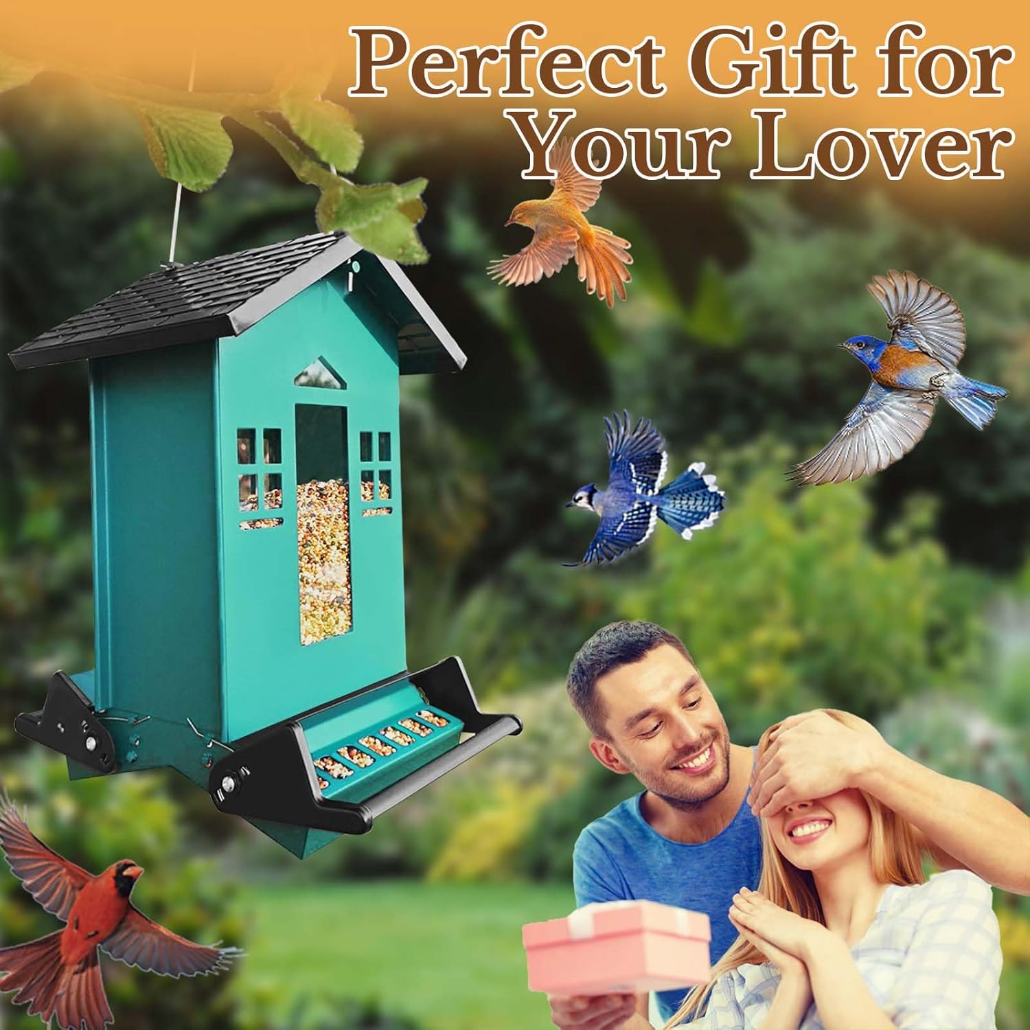 Squirrel Proof Bird Feeder for Outside, Bird Feeders for Outdoors Hanging 5 Lbs Seed, Wild Bird Feeder Large Capacity (Green)