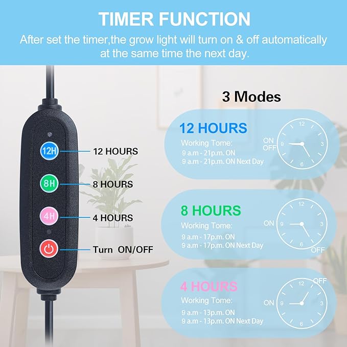 • 【Auto 4/8/12H Timer On/Off Daily】This table top bonsai grow light designed with 4/8/12H built-in timer. Set it and forget it. Your plants will thrive.