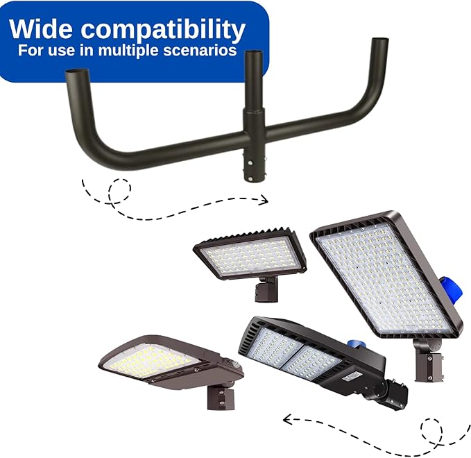 • Easy Compatibility: The mounting bracket tenon adaptor provides stable support for heavy-duty LED parking lot lights, shoebox lights, slip fitter area lights, and outdoor street lights (please verify the required dimensions). Whether illuminating streets, courtyards, or commercial parking lots, it is a reliable solution