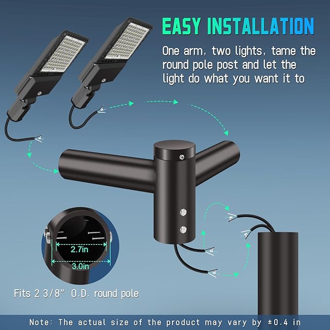 • High Adaptability: Specifically designed for parking lot lights, shoe box lights, and street area lights, precisely matching installation requirements. Easily extend the light body to optimize lighting coverage and enhance parking lot lighting effects