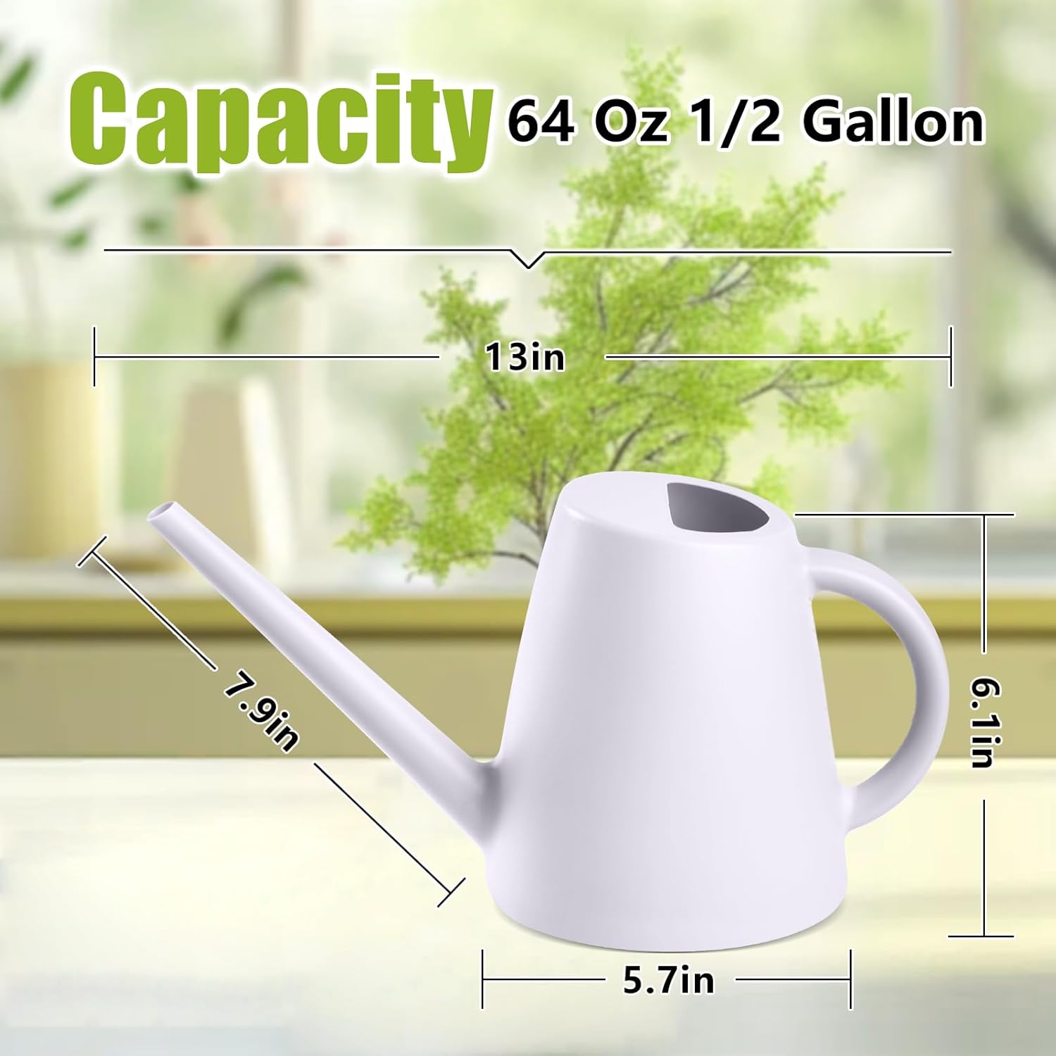 ZXJ Plant Watering Cans for Indoor and Outdoor Home Garden Plants - with Long Spout - White - 1/2 Gallon