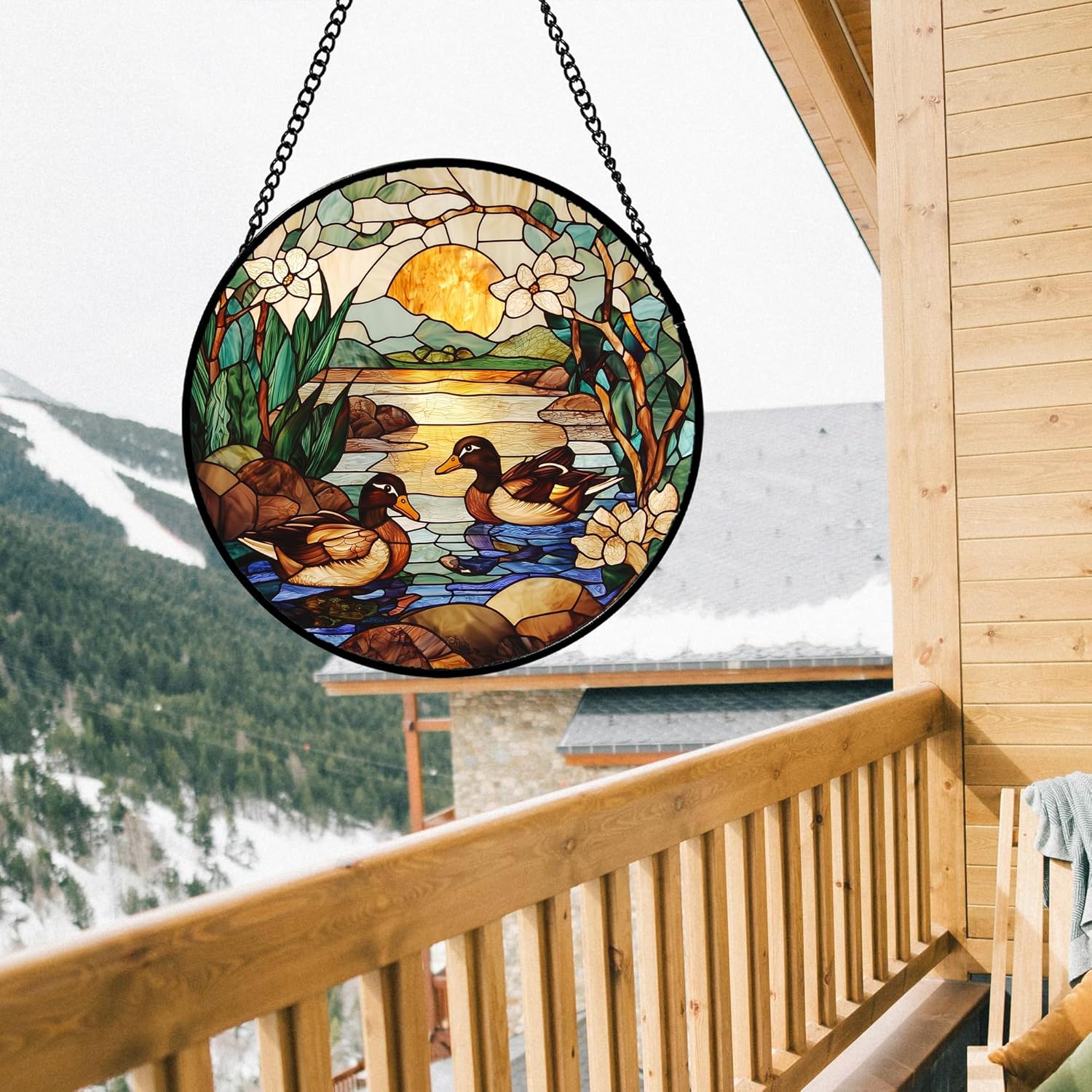 Stained Glass Window Hanging, Ducks in The Pond Sun Catcher for Door Home Decor Landscape Plant Suncatcher Christmas Mother's Day Birthday Gifts for Women Men Mom Nana 9.8 in