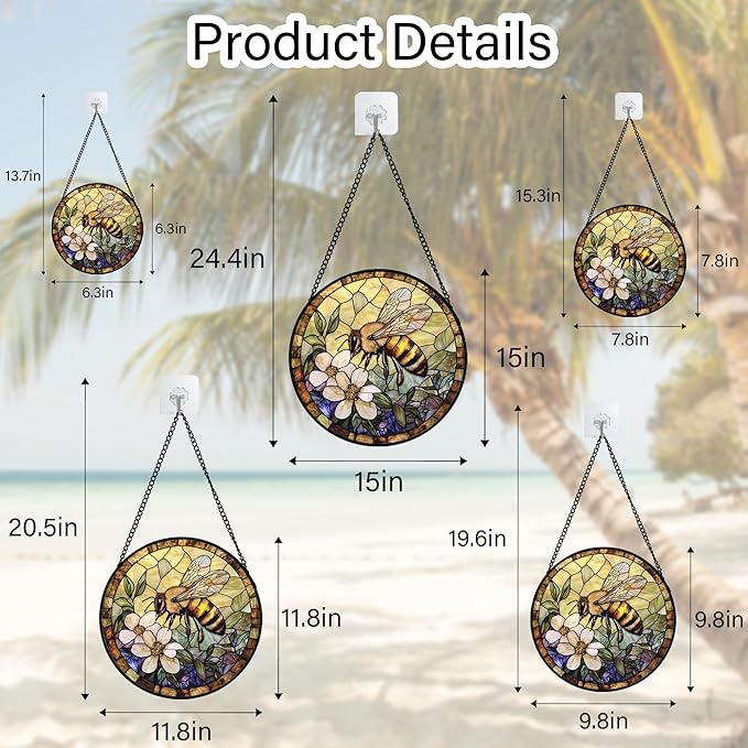Stained Glass Window Hanging, Vintage Bee Yellow Flower Sun Catcher for Window Door Home Decor Suncatcher Christmas Mother's Day Birthday Gifts for Women Men Mom and Nana 6.3 in