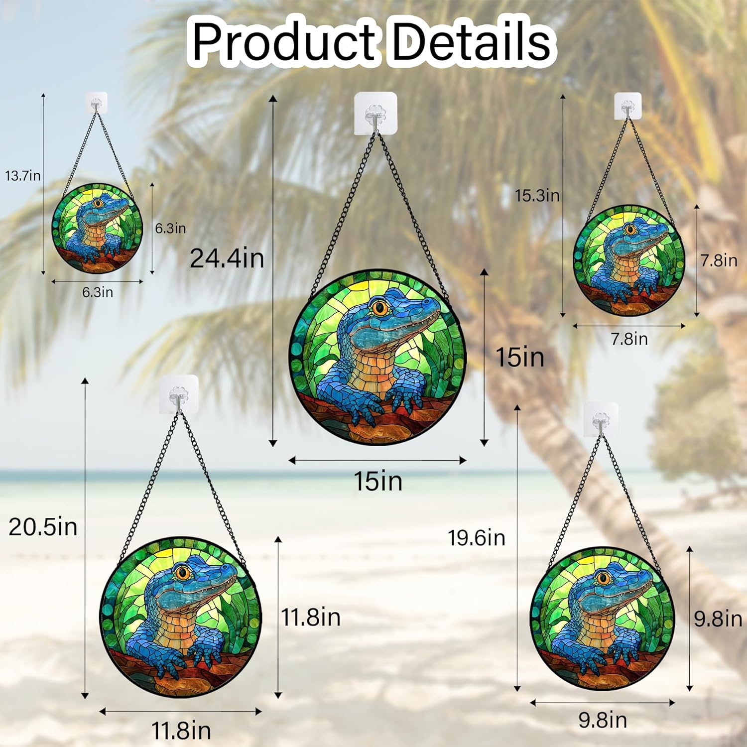 Stained Glass Window Hanging, Blue Alligator Sun Catcher for Window Door Home Decor Green Brown Suncatcher Christmas Mother's Day Birthday Gifts for Women Men Mom and Nana 7.8 in
