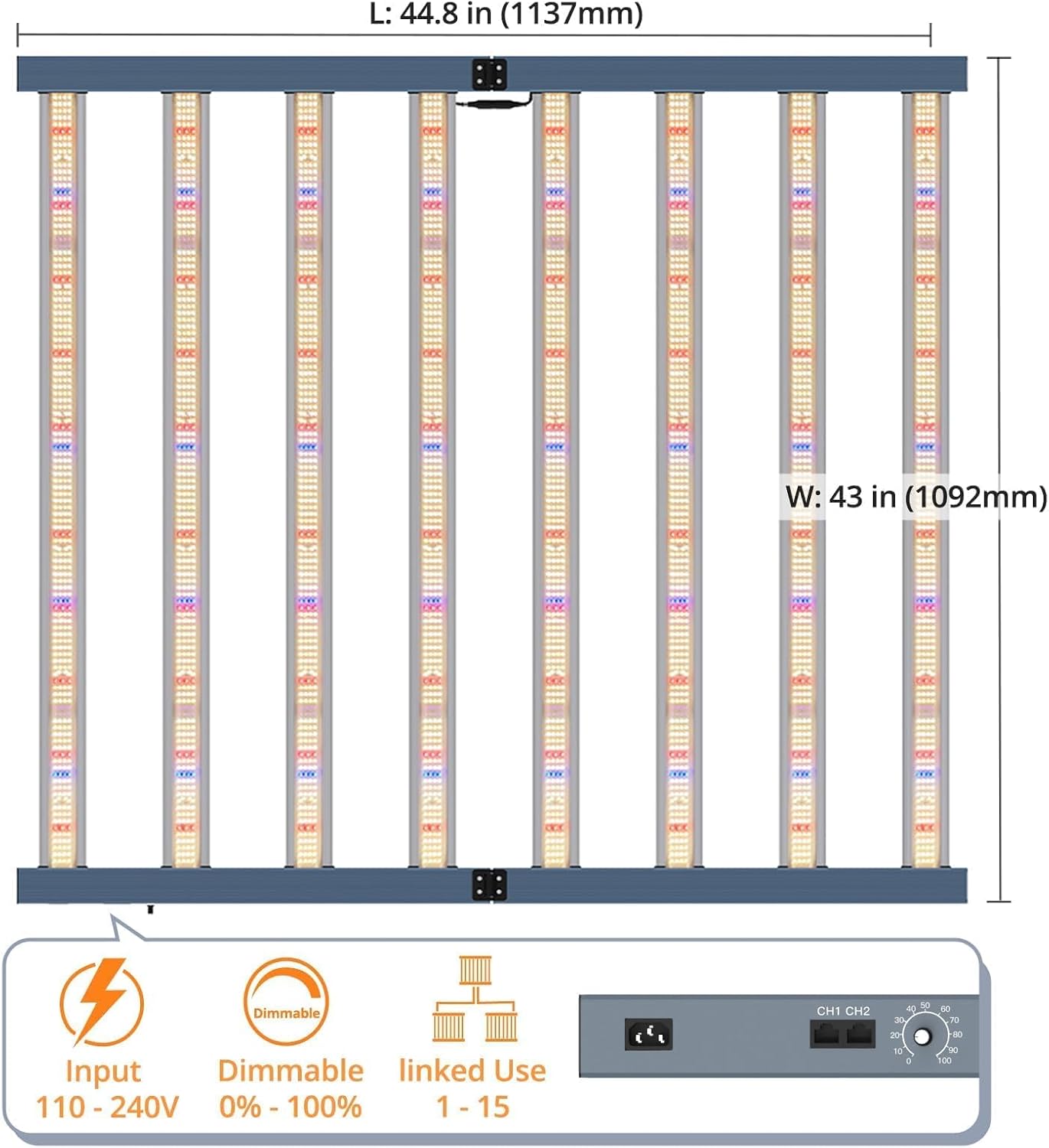 • Stable with Good Thermal Management:The 800w led grow light utilizes a passive cooling system with noiseless fans for quiet steps and longer life. Made of aluminum, the plant grow light is lightweight and safe while providing excellent thermal management and reliable working in temperatures up to 95°F / 35°C and 90% humidity