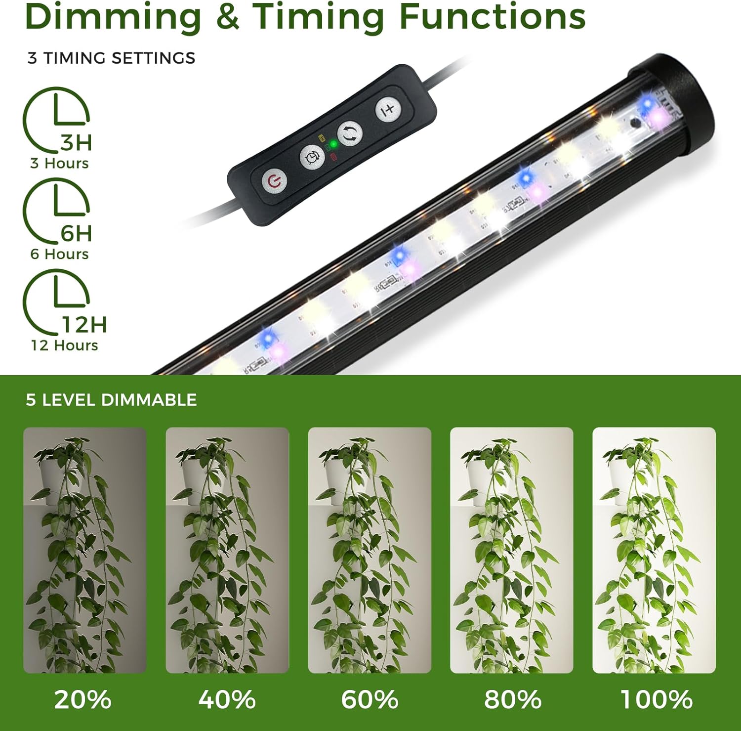 • [Vertical Grow Light & Wide Irradiation Area]: Featuring a 120 degree beam angle provides ample light for every angle of the plants, provides larger and more even illumination, stimulating the growth potential of plants. Tips: Our grow light comes with hanging accessories, vertical or hanging according to your needs.