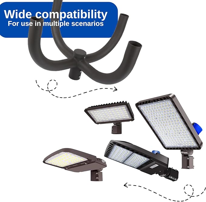 • Tenon Mounting Arm for 4 Lights: 20.08 lb heavy-duty tenon adapter effortlessly supports 4 parking lot lights without wobbling, saving 80% in costs compared to traditional single-light bracket solutions. An ideal choice for new projects requiring lighting upgrades